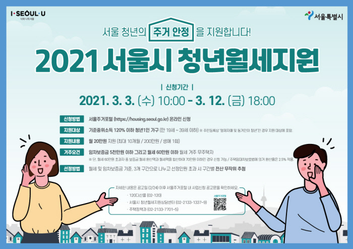 서울시 주거포털을 통해 필요한 정보를 얻고, 적극적으로 청년월세지원을 신청하여, 보다 안정적인 미래를 준비하시길 바랍니다.