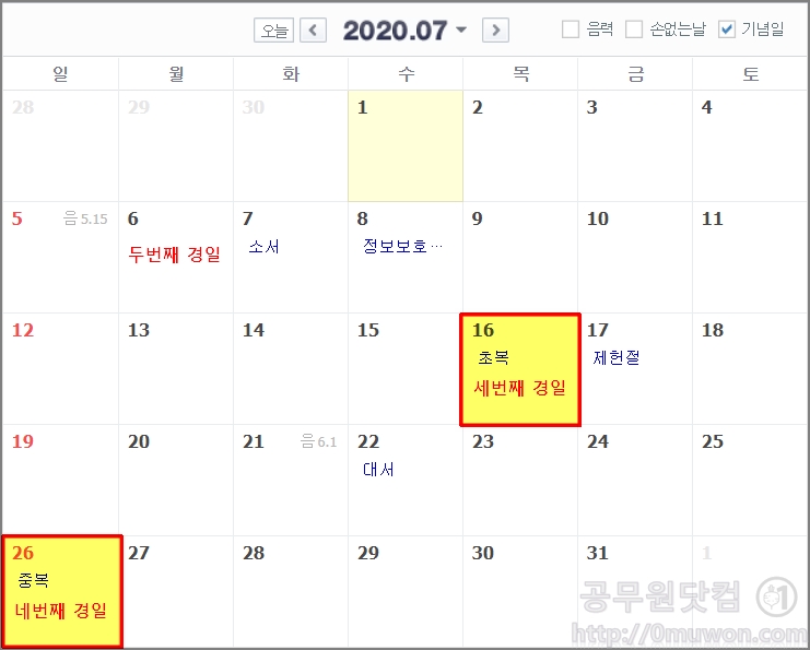 - 초복: 7월 16일 (화요일)