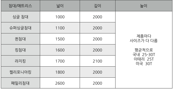침대 사이즈 규격