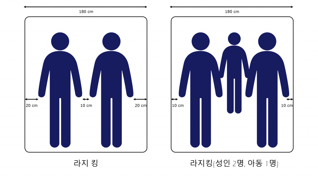 킹 사이즈 침대는 가장 큰 사이즈의 침대로, 일반적으로 180cm x 200cm의 크기로 제작돼요. 이 침대는 최대의 수면 공간을 제공하며, 두 사람이 매우 넉넉하게 사용할 수 있어요. 킹 사이즈 침대는 큰 공간을 필요로 하므로, 침실이 넓은 경우에 적합해요.